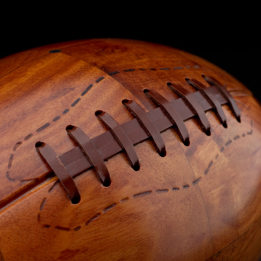 When you get to my age (50), it is almost pointless to buy me something for my birthday or Christmas. I buy what I want when I want it, the stuff I don’t have and want is really expensive, otherwise I have it now. When my son and his wife visited for the holidays and presented me with the football, I was really impressed. I love the beauty of wood and having played college ball, this is the type of keepsake I can display in my office.